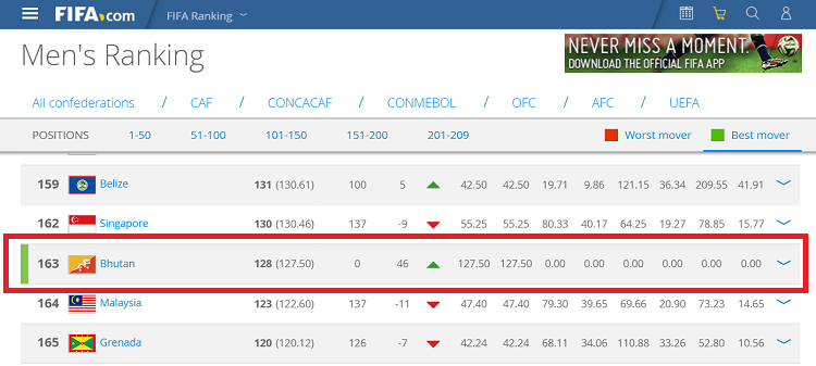快進撃のブータン代表 Fifaランキングで最下位を脱出し歴史的ジャンプアップ